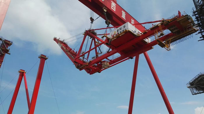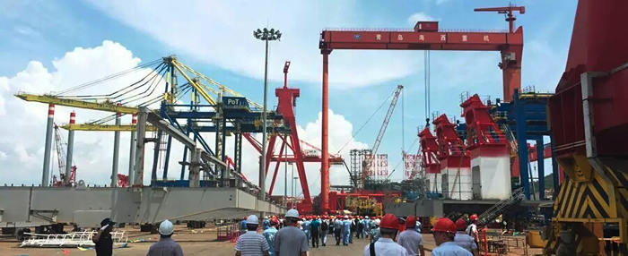 公司生產(chǎn)基地參觀同樣火爆:適逢總裝現(xiàn)場(chǎng)70T-60M岸邊集裝箱起重機(jī)項(xiàng)目整體吊裝, 1600T龍門吊平穩(wěn)吊起850噸的前后大梁、緩緩上升、精準(zhǔn)定位、穩(wěn)穩(wěn)落于該岸橋的門框上,現(xiàn)場(chǎng)高效的安裝工藝,給了在場(chǎng)的400余嘉賓巨大的視覺沖擊,掌聲、贊美聲陣陣不斷。公司整體室內(nèi)噴涂的涂裝工藝、超大型設(shè)備整機(jī)滾裝運(yùn)輸?shù)能浻布?shí)力也讓參觀嘉賓耳目一新。