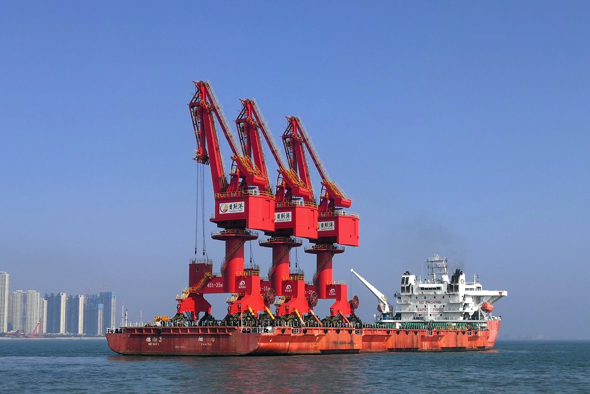 此次發(fā)運(yùn)的3臺(tái)門機(jī)將安裝在日照鋼鐵精品基地配套成品碼頭工程泊位上,為基地鋼鐵產(chǎn)成品裝船出廠及煤炭、廢鋼卸船作業(yè)提供服務(wù)。新開工的2臺(tái)門機(jī)與其屬于同一碼頭,該型號(hào)門機(jī)是海西重機(jī)性能完善、穩(wěn)定可靠、裝卸高效的成熟產(chǎn)品,可滿足大運(yùn)量、高效率和頻繁的散雜貨裝、卸船作業(yè)需要。