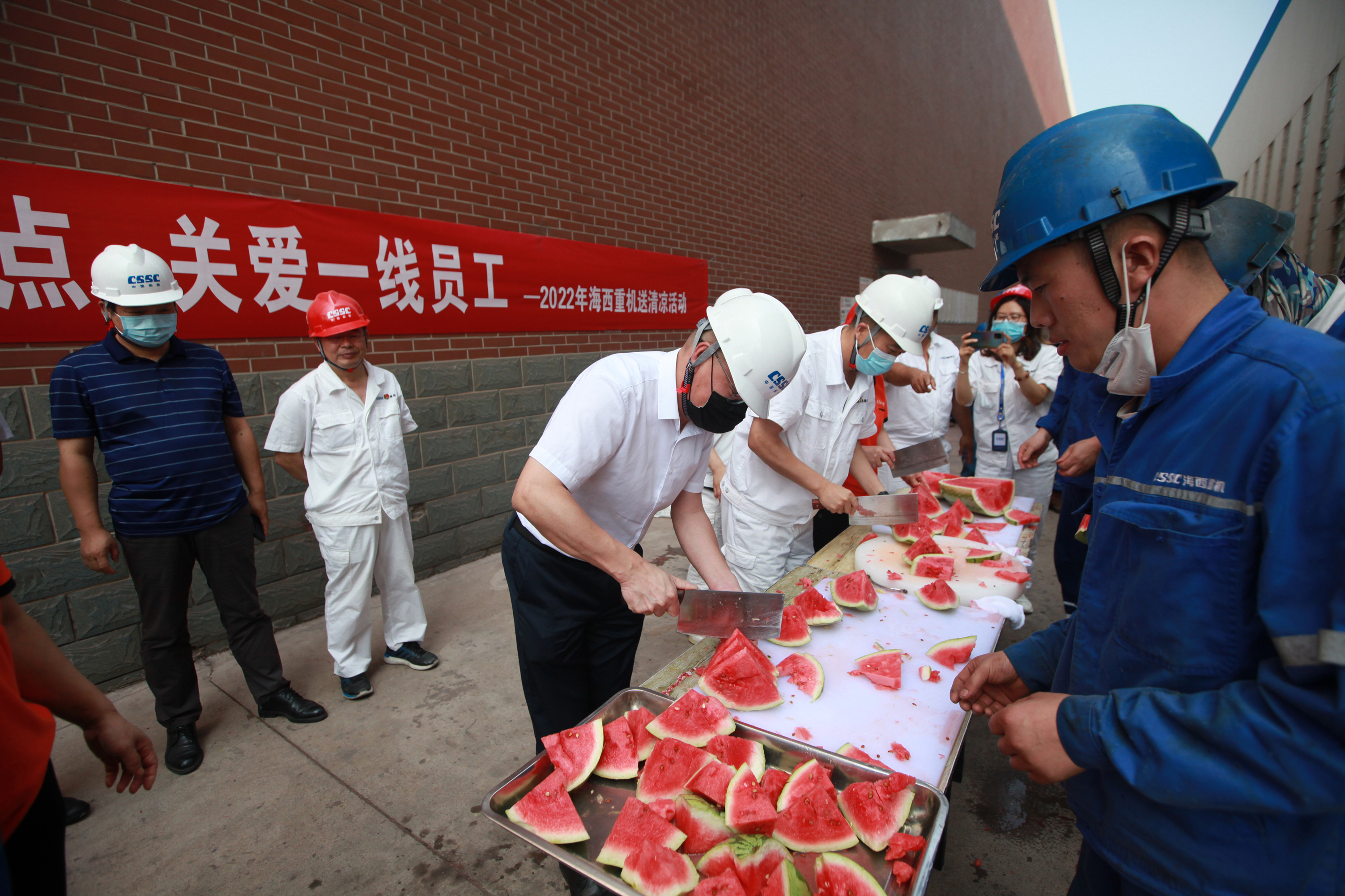 大暑將至,驕陽(yáng)似火,青島開啟了“蒸烤”模式。但酷暑并未阻擋海西人大干快干的熱情,各個(gè)項(xiàng)目都在緊鑼密鼓、熱火朝天地推進(jìn)著。為慰問(wèn)奮戰(zhàn)在一線的海西人、傳遞武漢總部及公司的關(guān)心關(guān)愛,近日,中國(guó)船舶集團(tuán)旗下武漢船機(jī)海西重機(jī)公司組織開展了以“戰(zhàn)高溫沖節(jié)點(diǎn) 關(guān)愛一線員工”為主題的2022年送清涼活動(dòng)。
