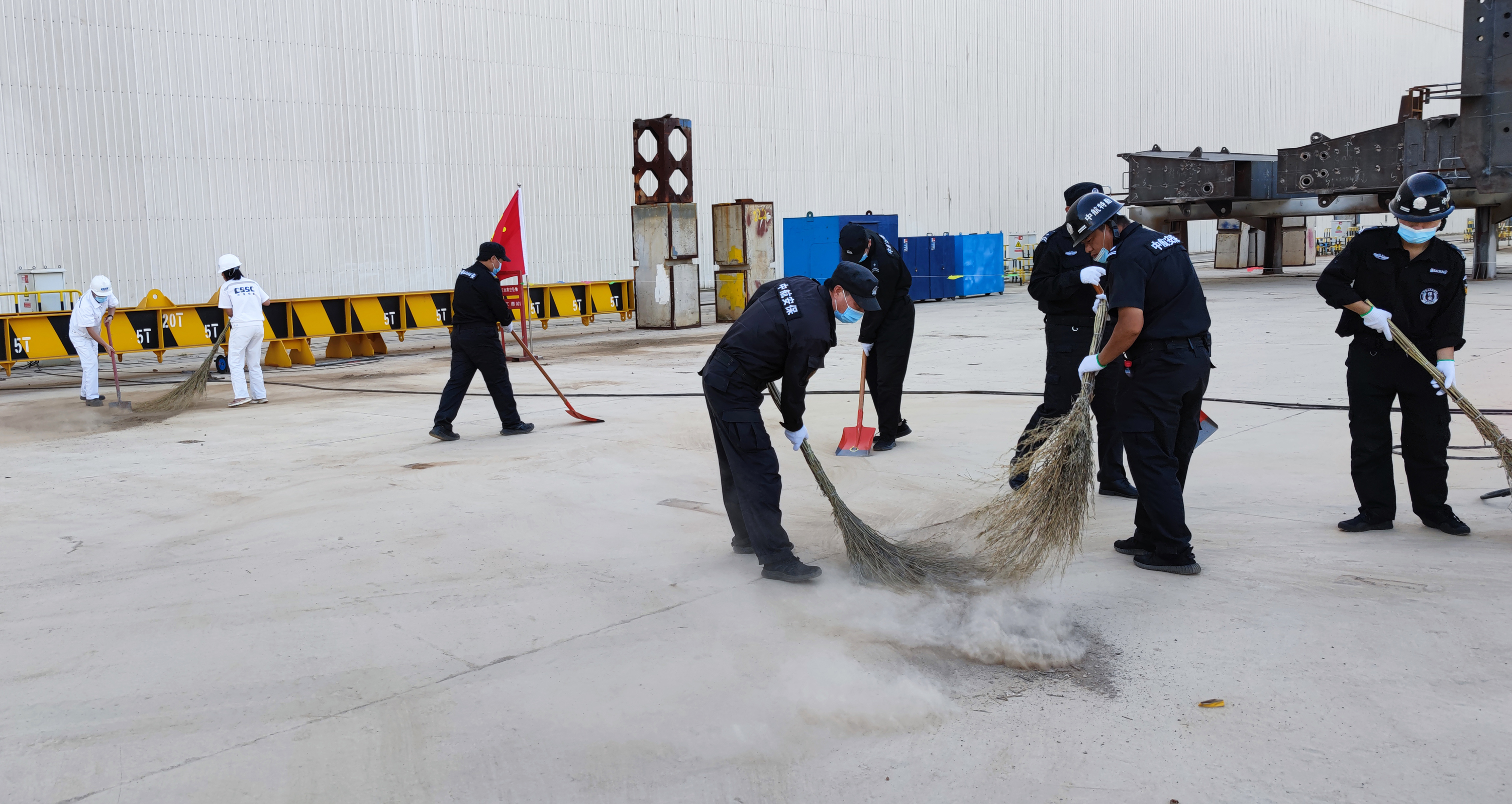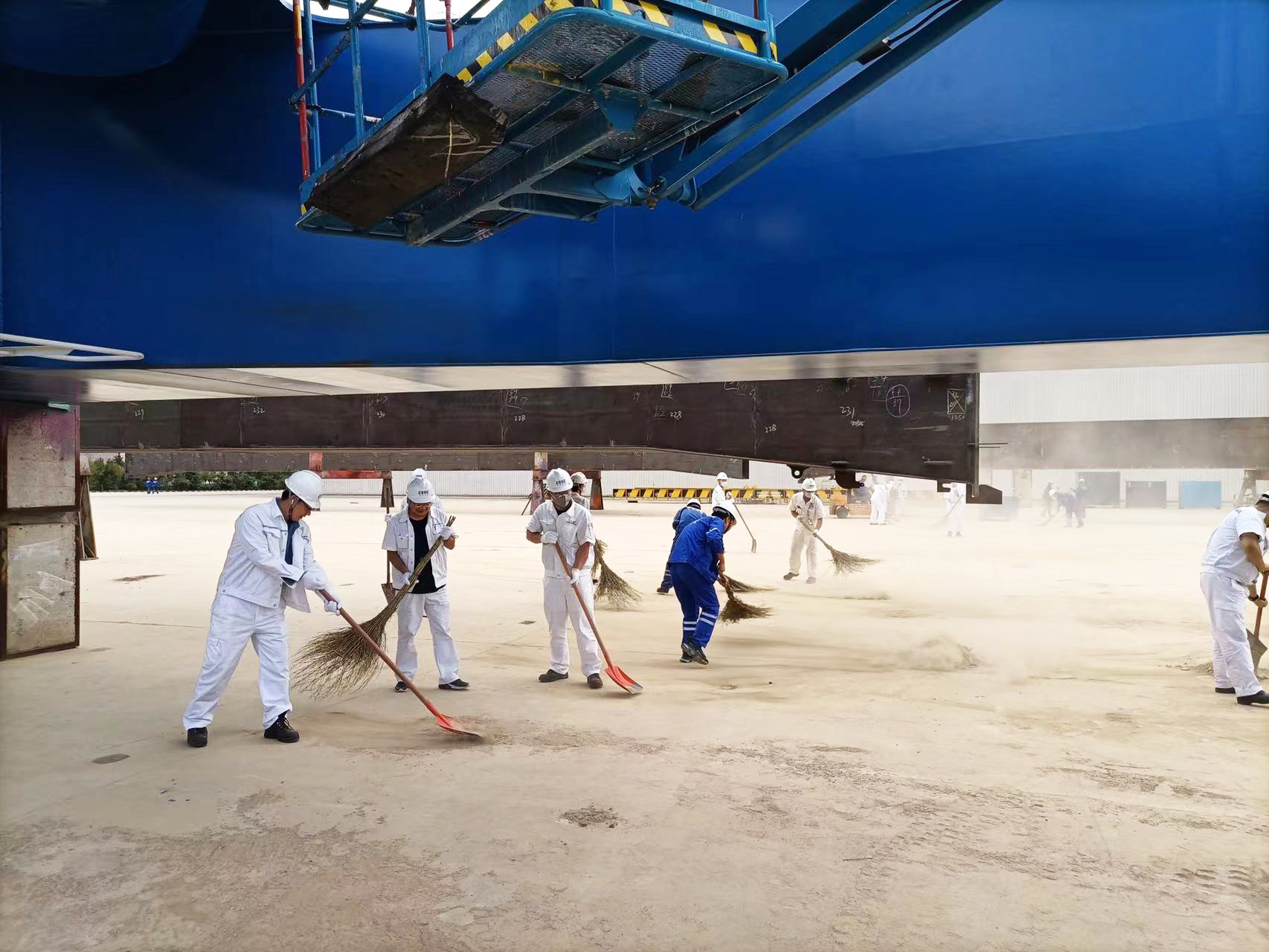 各黨支部根據(jù)劃分好的勞動(dòng)區(qū)域精心策劃,對(duì)支部參與人員進(jìn)行分組,細(xì)化任務(wù)分工,提前領(lǐng)用清潔工具,為活動(dòng)開展做足準(zhǔn)備。每天下午四點(diǎn),相應(yīng)的黨支部根據(jù)分工安排,帶好清潔工具,分組奔赴新拼裝場(chǎng)地區(qū)域。大家熱情似火,干勁十足。每個(gè)參與者不怕苦不怕累,不怕塵土迷了眼睛,用掃帚掃、用鐵鍬鏟,齊心協(xié)力,爭(zhēng)做先鋒。汗水濕透了每個(gè)人的衣襟,熱火朝天的勞動(dòng)場(chǎng)面感染著在場(chǎng)每一個(gè)人,工作服蒙上了一層塵土,每個(gè)人的臉上卻洋溢著笑容,帶走了泥土,留下了熠熠生輝的奉獻(xiàn)精神。