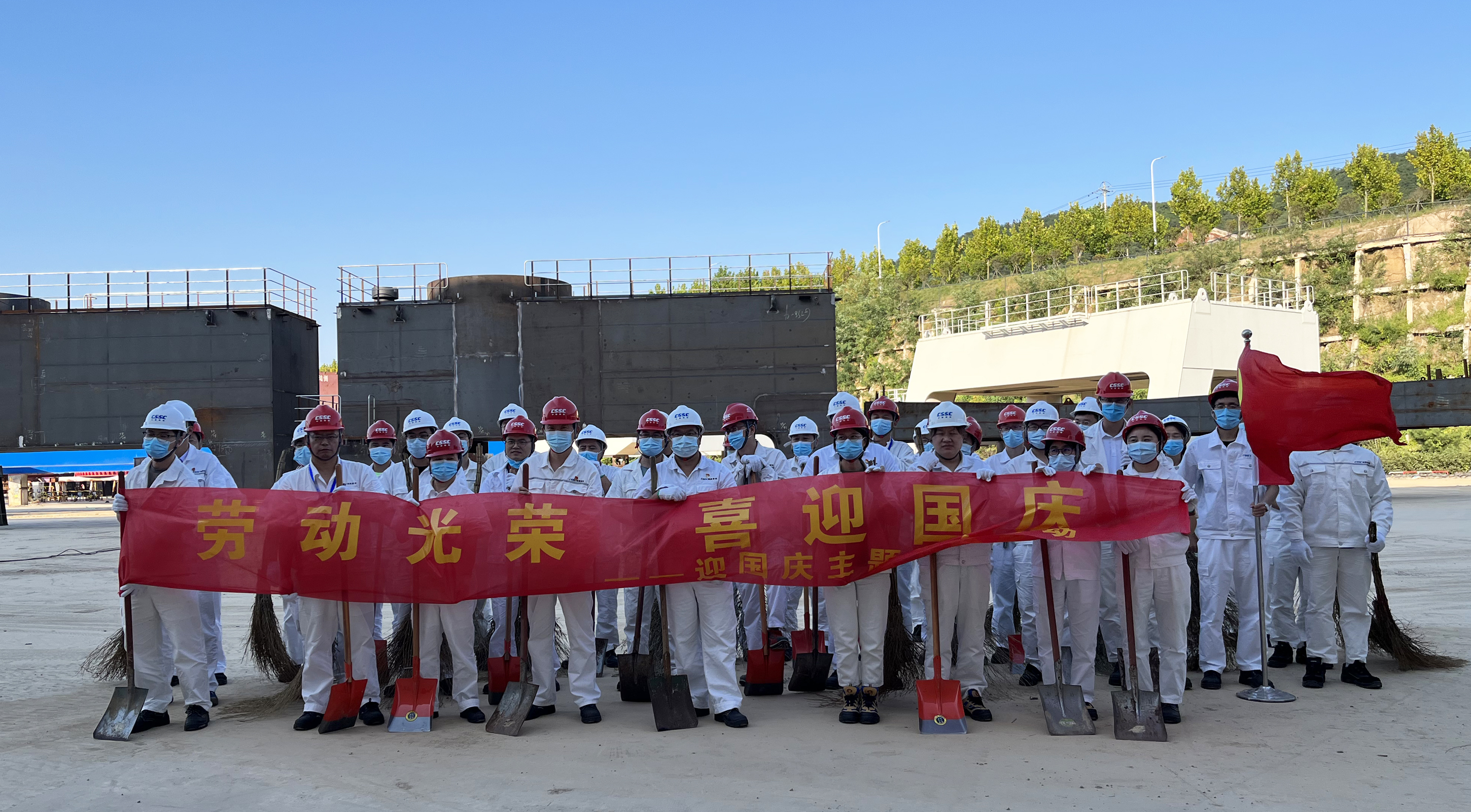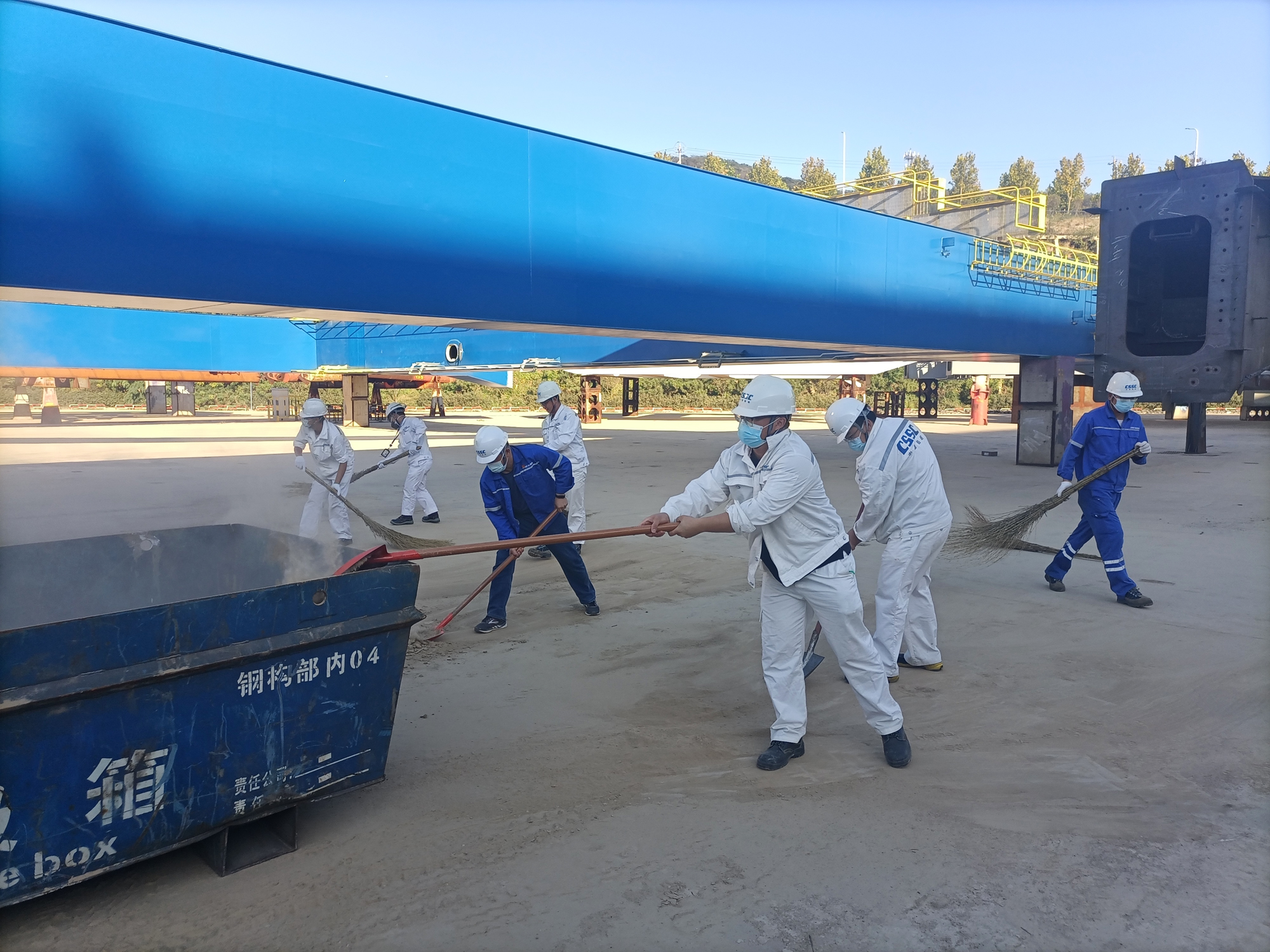 近期臺(tái)風(fēng)過境,暴雨天氣帶來了秋季的涼意,卻也給廠區(qū)生產(chǎn)帶來了不便。新拼裝場(chǎng)地區(qū)域雨水褪去后留下一層厚厚的泥土,影響了該區(qū)域的生產(chǎn)活動(dòng)。值此國(guó)慶節(jié)來臨之際,為建設(shè)美麗廠區(qū),喜迎“國(guó)慶”,充分發(fā)揮黨員先鋒模范作用以及入黨積極分子、青年團(tuán)員和骨干的主觀能動(dòng)性,中國(guó)船舶旗下武漢船機(jī)海西重機(jī)公司黨委于9月20日-9月29日組織開展迎國(guó)慶主題義務(wù)勞動(dòng)活動(dòng),清理新拼裝場(chǎng)地泥土。