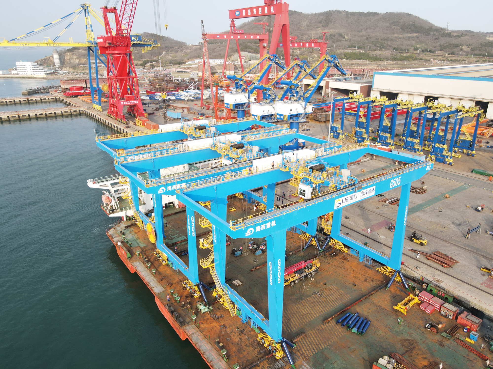 4月14日,中國船舶集團(tuán)旗下武漢船機(jī)海西重機(jī)公司為山東港口濰坊港打造的3臺(tái)41t-37m自動(dòng)化軌道吊順利發(fā)運(yùn)。