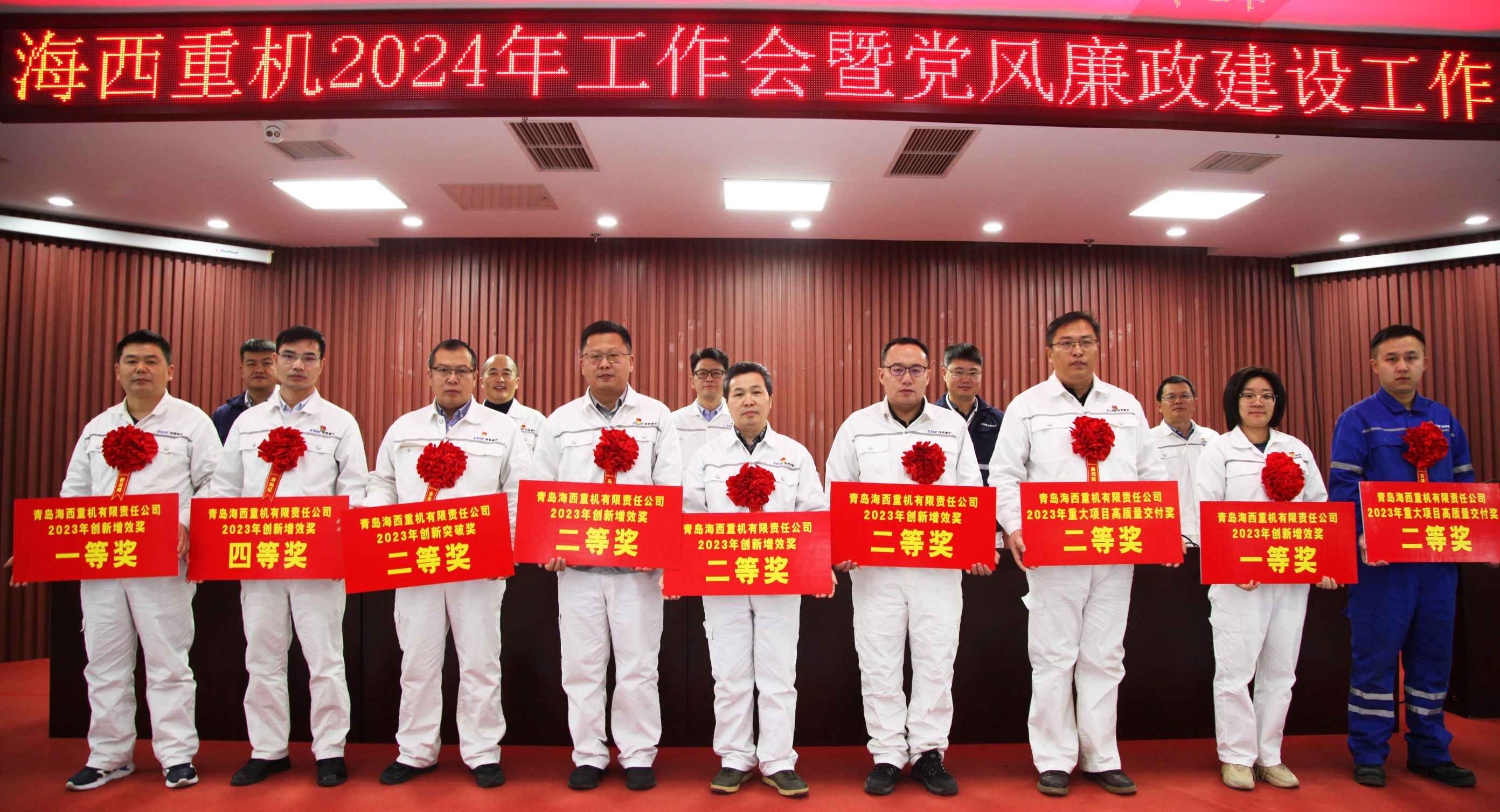大會(huì)表彰了公司2023年度“四好”班子、優(yōu)秀管理者、2023年度重大項(xiàng)目高質(zhì)量交付獎(jiǎng)、創(chuàng)新突破獎(jiǎng)、創(chuàng)新增效獎(jiǎng),組織簽訂了2024年方針目標(biāo)、2024年承包合同和黨風(fēng)廉政建設(shè)主體責(zé)任書。